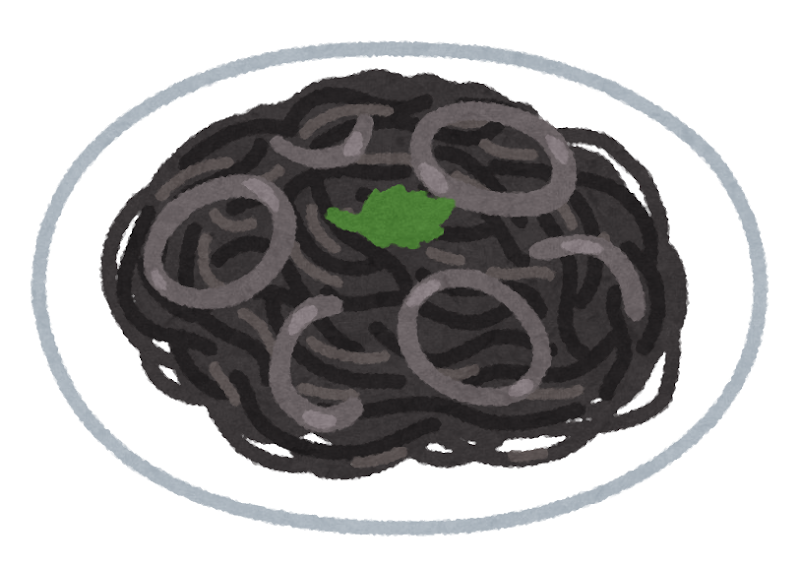 イカスミパスタのイラスト スパゲティ イカスミパスタ シュガークッキー パスタ